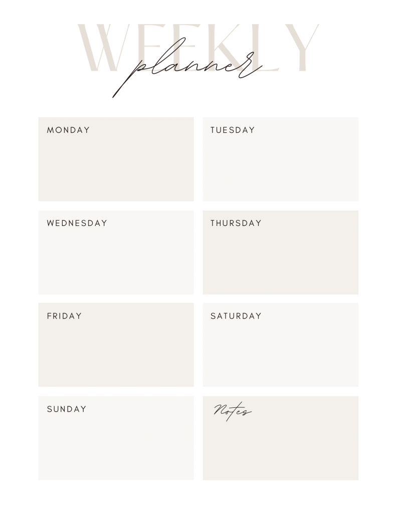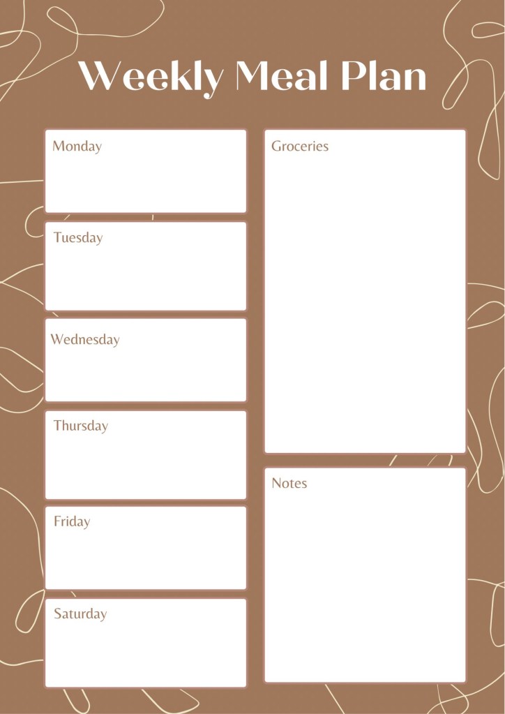 Below is a daily planner template that I’m going to try to start using this coming week. I already have a weekly workout planner that I used earlier in the year that I’m going to start back up. I also am adding a weekly planner and weekly meal planner as well! All of these are from Canva and I cannot wait to see how it all plays out!